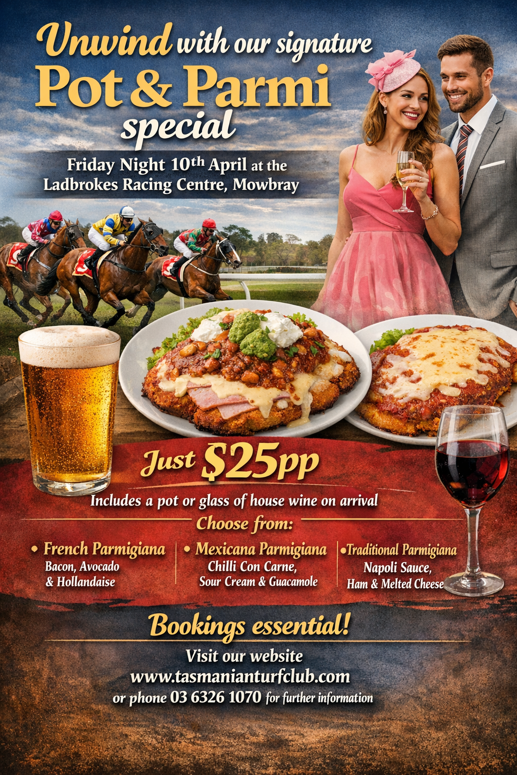 At the Tasmanian Turf Club we take great pride in being able to offer you the very best hospitality experience with dining options set against prime trackside viewing.